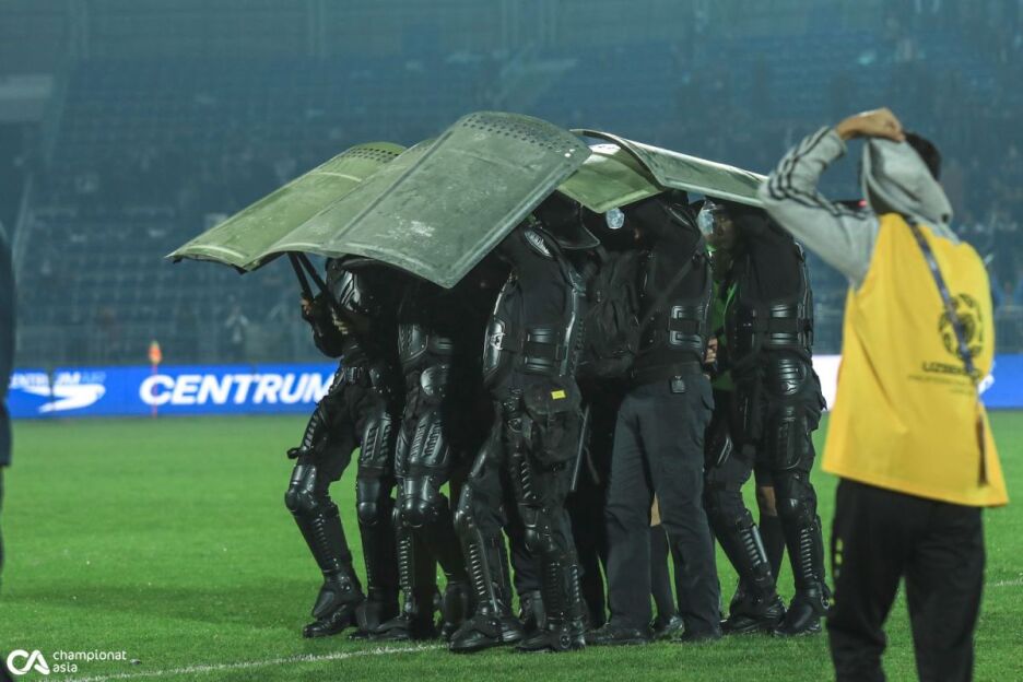 Asker Najafaliev boshchiligidagi hakamlar brigadasi "Andijon" - OKMK uchrashuvidan keyin maydonga xavfsizlik xizmati xodimlari yordamida tark etishdi.