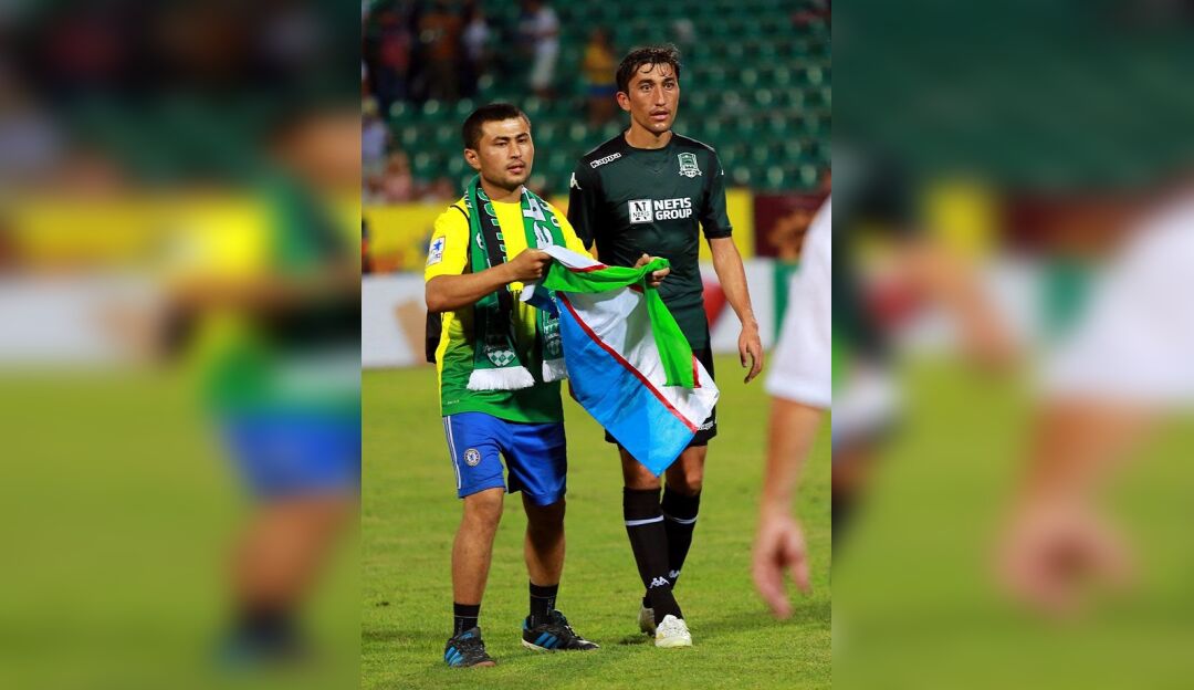 E'tiborlisi, mana shu o'yin chog'ida o'zbekistonlik futbol ishqibozi mamlakatimiz bayrog'ini ko'targan holda maydonga yugurib chiqdi.