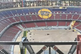 Айни дамда техникалар "Камп Ноу" трибуналарини бузиш жараёнини ўтказмоқда. Стадионнинг тепа қисми деярли бузиб бўлинган.