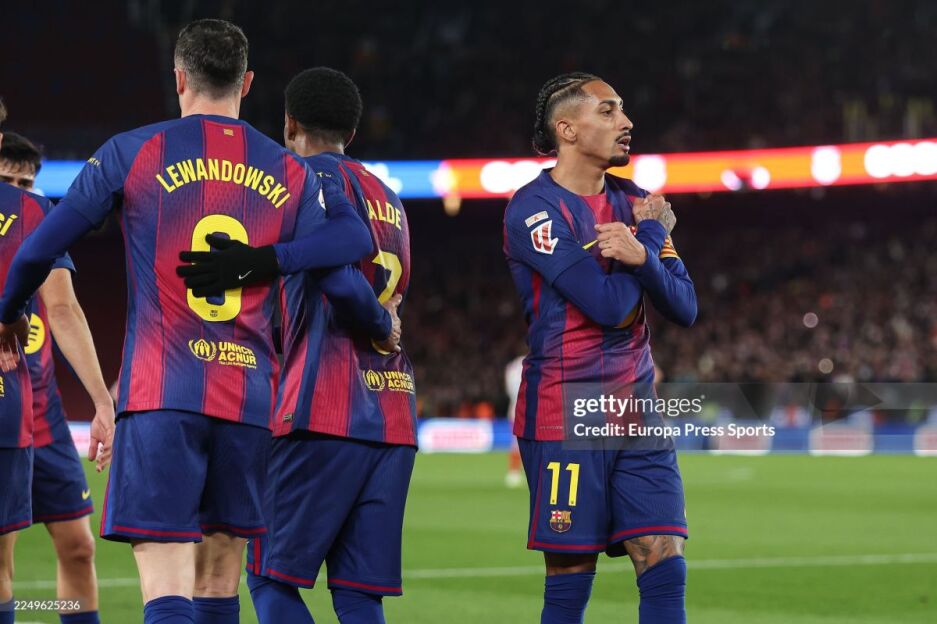 "Барселона": Гарсия - Кунде, Мартин, Кубарси, Бальде - Гарсия, Педри (Касадо), Ольмо (Рашфорд) - Ямаль (Кристенсен), Левандовский (Торрес), Рафинья (Дро Фенрнандес)