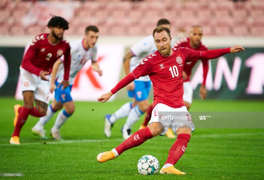 Дания – Шмейхель, Йоргенсен (Кьер, 82), Вестергор, Мэле, Дальсгор (Педерсен, 46), Эриксен (Винд, 72), Биллинг (Кристенсен, 72), Йенсен, Ольсен (Поульсен, 62), Корнелиус (Систо, 46), Брэйтуэйт.