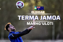 Parvoz qilayotgan Turg'unboev, jarohatlangan Sergeev. O'zbekiston - Avstraliya uchrashuvidan GALEREYA
