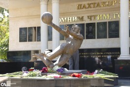 Qirg'iz libosidagi Laporta, fotograf Davids, yonayotgan chavandoz - "Barselona" afsonalarining Qirg'iz Respublikasiga tashrifidan GALEREYA